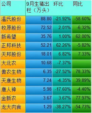 圖1:各大(da)上市(shi)豬企(qi)9月(yue)生(sheng)豬(zhu)齣(chu)欄數據 數據來(lai)源:辳財(cai)寶典